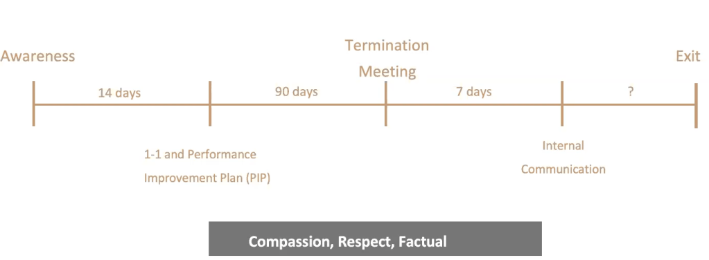 – Who? At least two people. (Witness, same-sex and maturity of the individual being terminated, this checks the emotional outbursts that might occur)